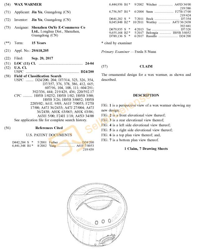 也就是说这家公司除了抢注商标,也在美国注册了在中国市场上已经出现15年的公模产品的外观专利。所以即使没有用Pro-Wax100这个商标,但是产品设计极其相似甚至是一模一样,那也有很大的风险。