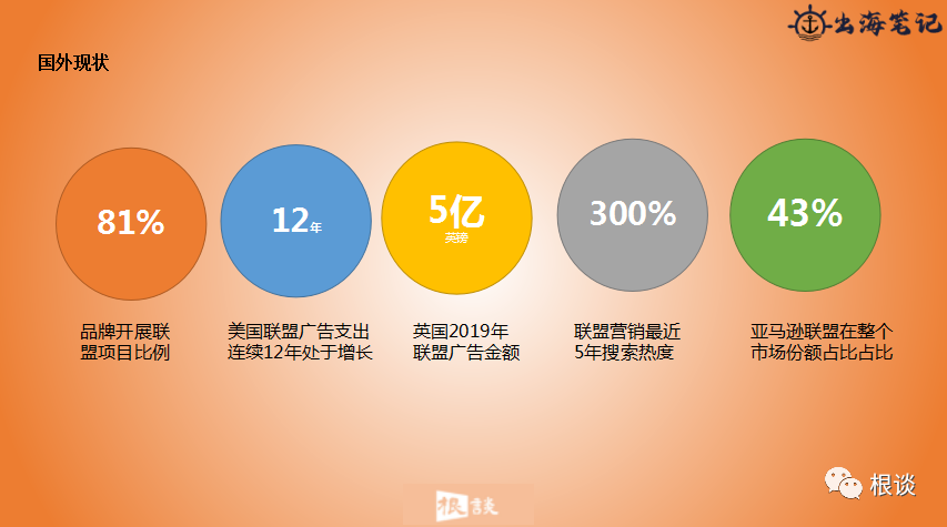 我们看看国外联盟营销的现状,首先先看看这5组数字,81%,12年,5亿,300%,43%